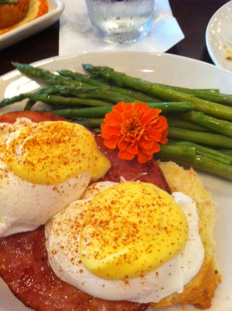 After the Arboretum, we went to Tupelo Honey for brunch. With fluffy biscuits and fried green tomatoes, not pictured. I didn't read the menu well and got this pretty piece of Canadian bacon under the poached eggs. It was easy enough to slip out and ended up in Winnie's dad's go box with his extra chicken, for another dinner. And I'm wondering, why aren't my poached eggs that nice looking at home?